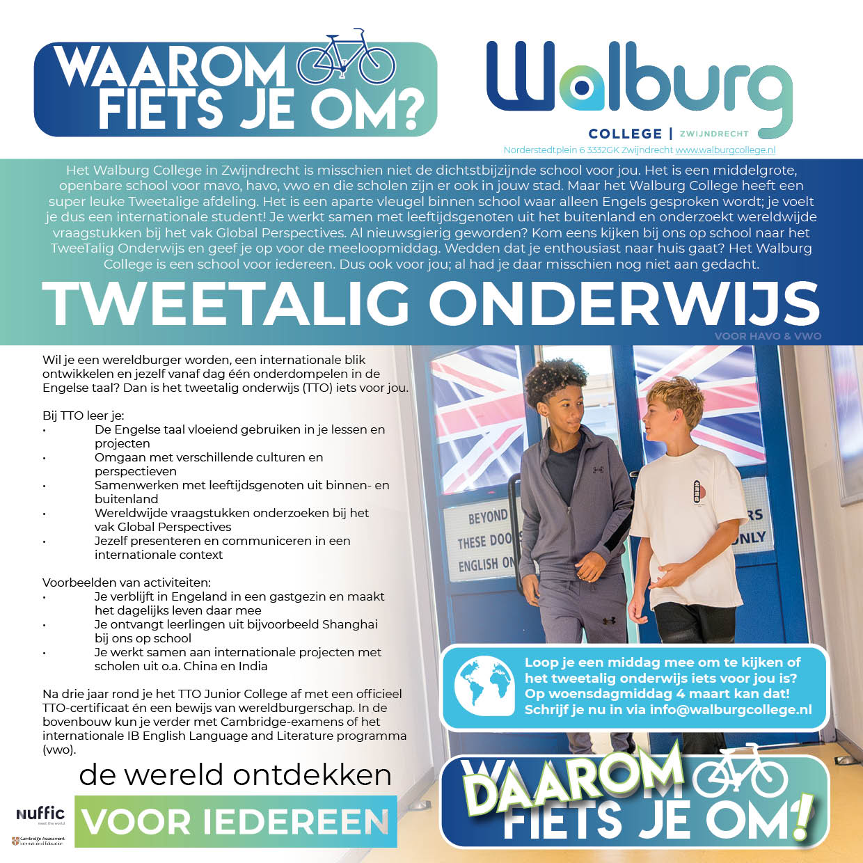 Het Walburg College is er voor iedereen! Komt u ook op 20 november naar het Walburg College?