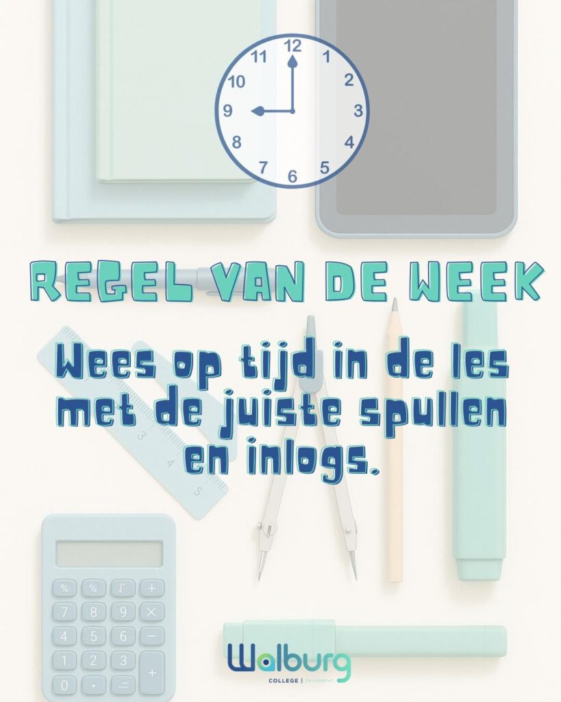 Wees op tijd in de les met de juiste spullen en inlogs.